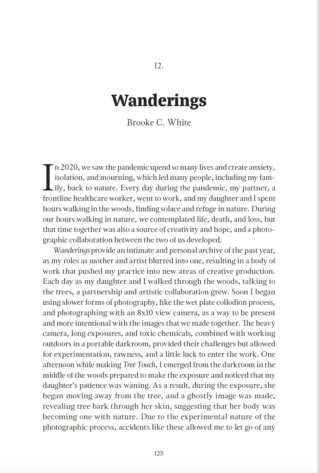 In 2020 we saw the pandemic upend so many lives and create the anxiety, isolation, and mourning that led many people, including my family, back to nature. Every day during the pandemic my daughter and I spent hours finding solace and refuge by walking in the woods. During those walks, we contemplated life, death, and loss, but that time together was also a source of creativity and hope, and a photographic collaboration between the two of us developed. Year of Wandering provides an intimate and personal archive of my life as my role as mother and artist blurred into one.
